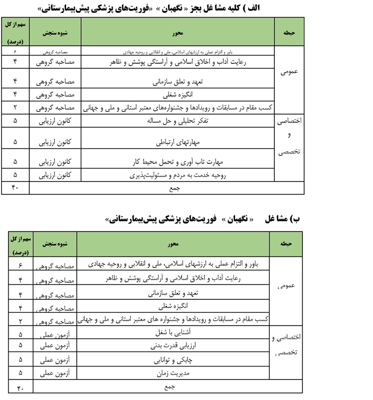 ارزیابی تکمیلی بر اساس محورها به شرح زیر برگزار خواهد گردید .جهت سولات احتمالی شماره 03444341120 در ساعات اداری پاسخگو می باشند.